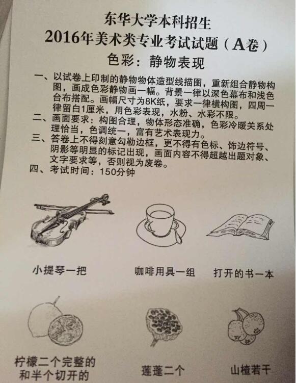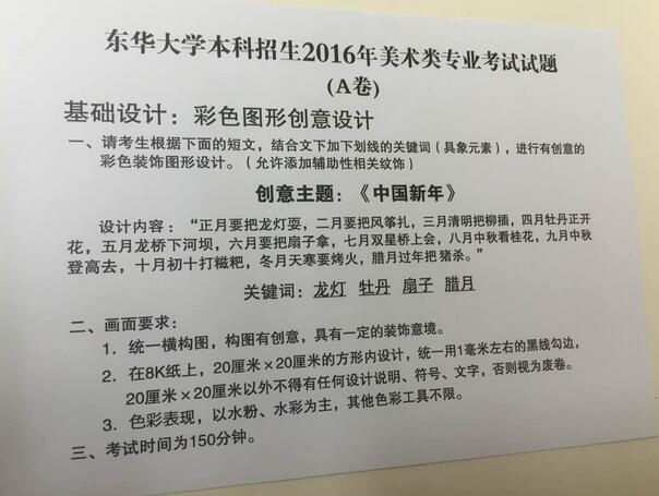 東華大學2016年美術類專業(yè)校考考題(天津考點)