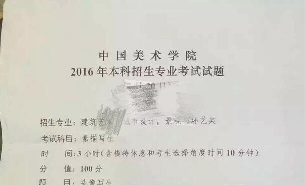 中國美術學院2016年本科專業(yè)校考考題(全國考點)