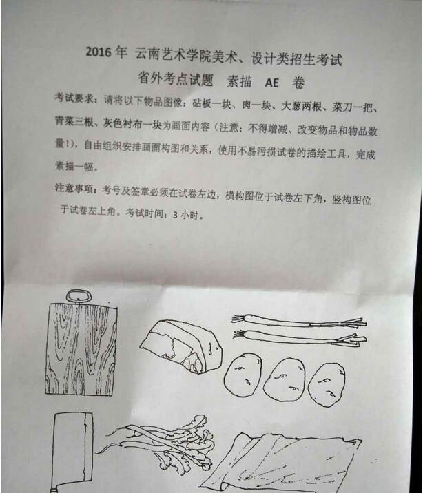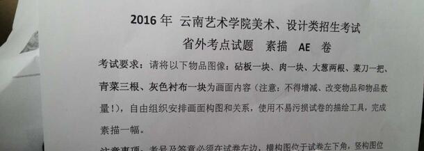 云南藝術(shù)學(xué)院2016年美術(shù)?伎碱}(山東考點)