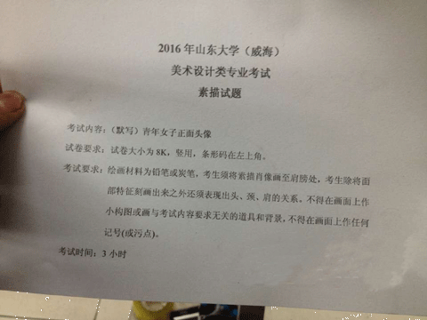 山東大學(xué)(威海)2016年美術(shù)校考考題(安徽考點(diǎn))