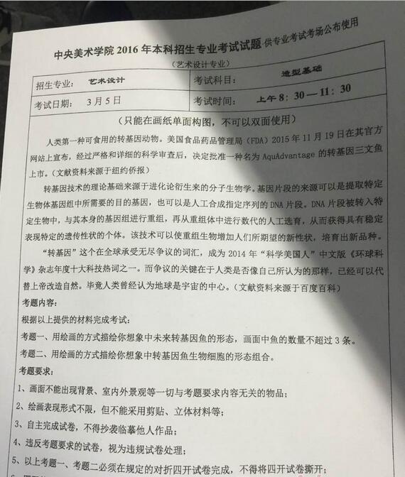 中央美術(shù)學(xué)院2016年本科招生藝術(shù)設(shè)計專業(yè)?伎碱}