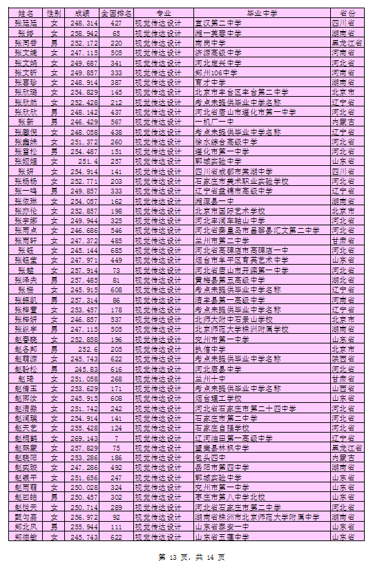 北京印刷學(xué)院2016年藝術(shù)類本科專業(yè)考試合格考生名單