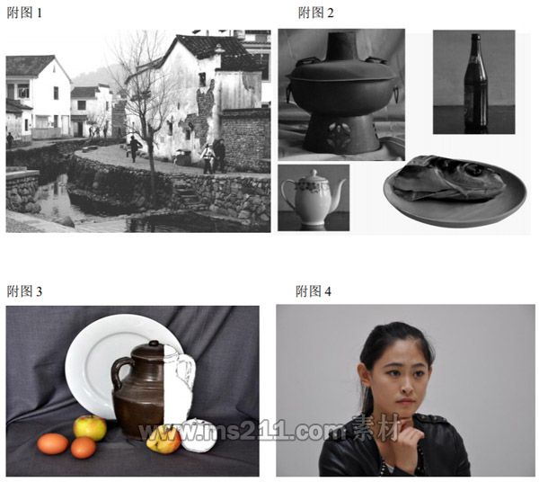 1.根據(jù)提供的靜物圖片資料,用素描的方法完成試卷;