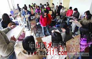 考生們擁擠在畫室里進(jìn)行考前的強(qiáng)化訓(xùn)練