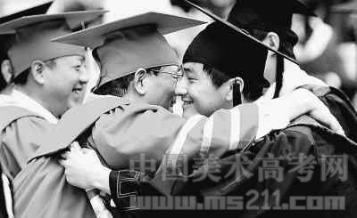 復旦大學畢業(yè)典禮上,師生深情相擁。王炬亮攝(人民圖片)