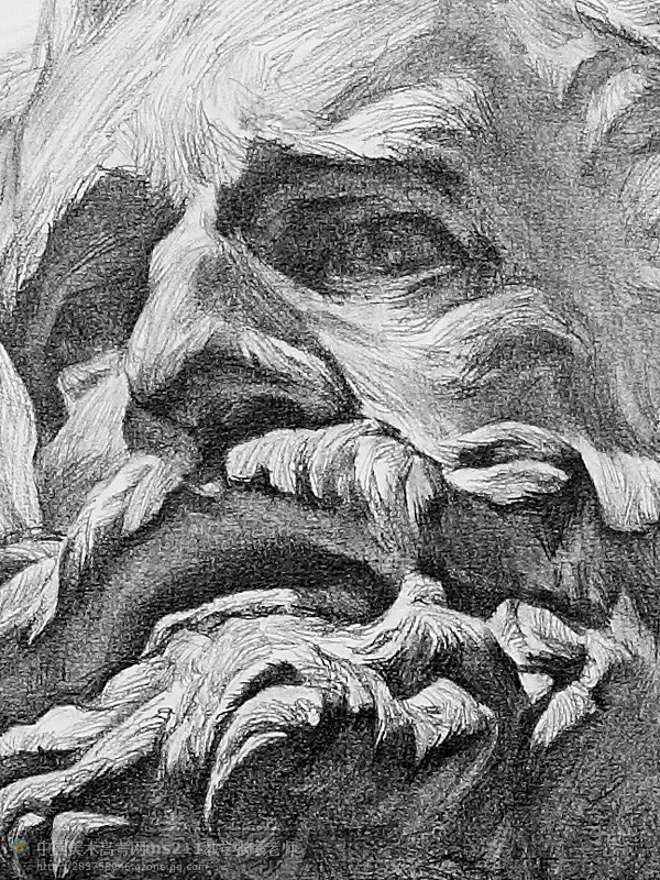 12、完成稿。最后提示,暗部我們可以用“手指”、“擦筆”來(lái)磨蹭,但是在明暗交界線向亮部變化時(shí),就要用線條描繪,要不就會(huì)出現(xiàn)畫面“肉”和“臟”的效果。