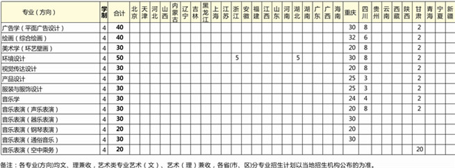 2014年四川外語(yǔ)學(xué)院重慶南方翻譯學(xué)院藝術(shù)類分省分專業(yè)招生計(jì)劃