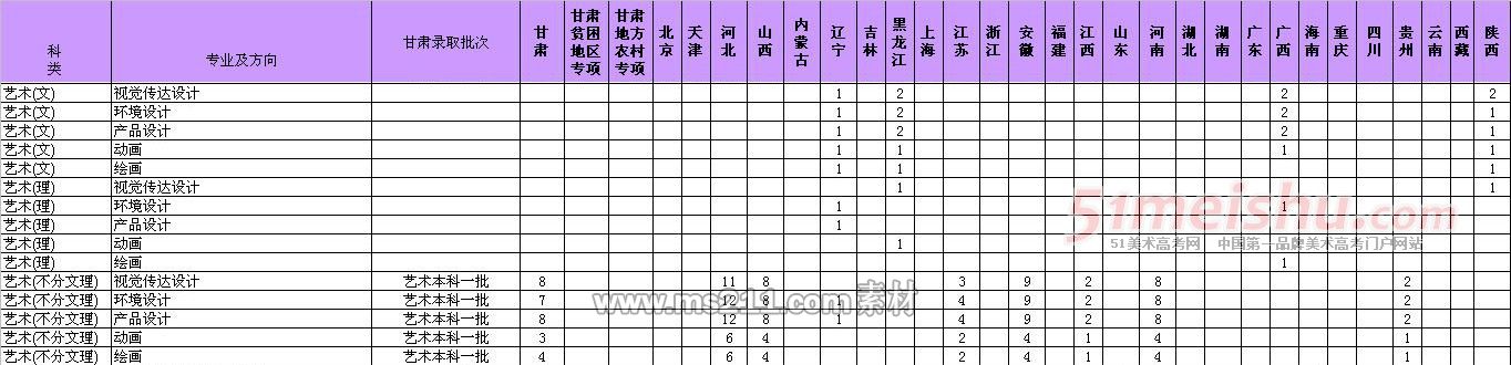 2014年蘭州交通大學(xué)藝術(shù)類分省分專業(yè)招生計(jì)劃