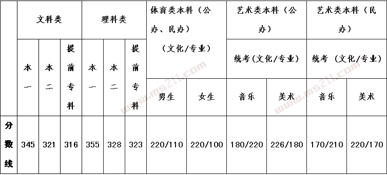 | 分數(shù)線 | 343 | 319 | 314 | 345 | 320 | 315 | 210/110 | 210/100 | 170/200 | 219/180 | 165/190 | 215/170 |