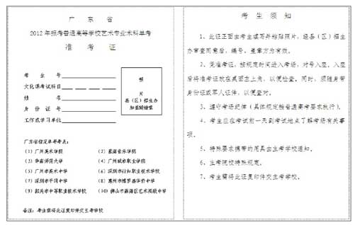 藝術(shù)類(美術(shù)類)高考準(zhǔn)考證復(fù)印件3張