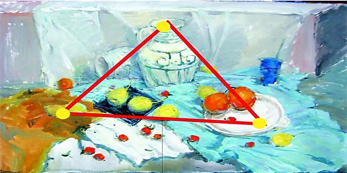 1.要發(fā)揮好三角形構(gòu)圖的優(yōu)勢,做好三角形的三個點(diǎn)的定位,把所見物體靈活地安排在三個點(diǎn)上。