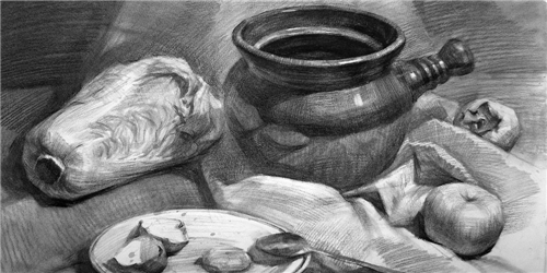 中間色調(diào)襯托明暗對(duì)比鮮明的主體物——根據(jù)人們對(duì)日常生活觀察的經(jīng)驗(yàn),近處的物體,總是覺得形象具體突出,色彩鮮明,黑白調(diào)子對(duì)比強(qiáng)烈。遠(yuǎn)處的景物在與近處景物對(duì)比之下,總是顯得形體模糊,黑白對(duì)比減弱。因此,在繪畫中,運(yùn)用這一明暗對(duì)比形式很普遍,具有真實(shí)感,也較容易表現(xiàn)出空間效果,使人有身臨其境的感受。