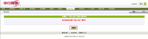 頁(yè)面提示已經(jīng)成功開(kāi)通網(wǎng)上支付服務(wù),點(diǎn)擊“確定”(圖8)。