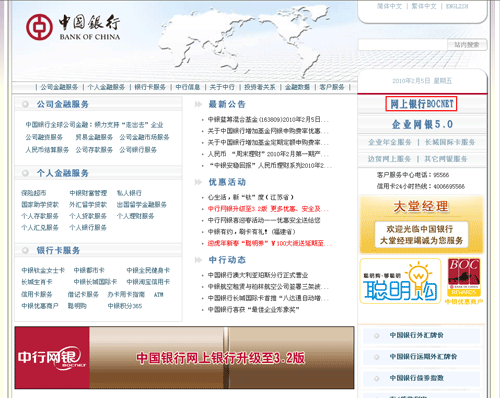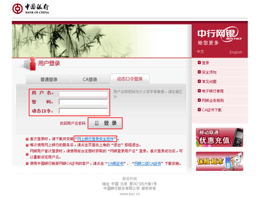 您在柜臺(tái)開(kāi)通網(wǎng)上銀行后,請(qǐng)首先登錄中國(guó)銀行門(mén)戶網(wǎng)站(www.boc.cn),點(diǎn)擊“網(wǎng)上銀行BOCNET”進(jìn)入登錄頁(yè)面(圖1)。