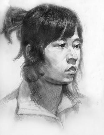 五、強(qiáng)調(diào)效果的完整。不管我們的試卷局部刻畫的多么深入具體,效果的完整是我們最終的目的,主次關(guān)系的加強(qiáng)與弱化,明暗關(guān)系的對(duì)比與統(tǒng)一,頭發(fā)與頭顱的依附關(guān)系,頭發(fā)與面部的協(xié)調(diào)關(guān)系,頭部與脖子的連帶關(guān)系等等都是我們最后需要加強(qiáng)的,當(dāng)然形象的生動(dòng)傳神也是一副頭像默寫的關(guān)鍵。這也是試卷爭(zhēng)取高分的法寶。