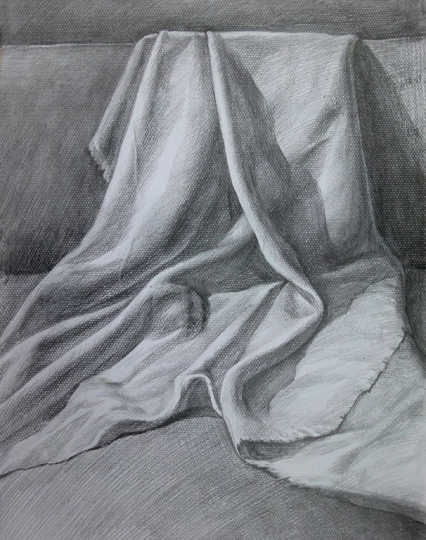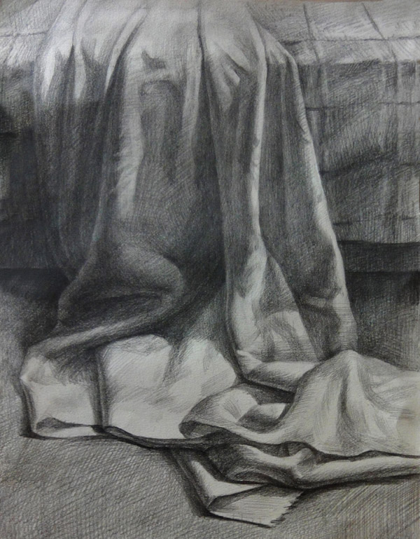 在素描靜物中襯布幾乎穿插在各種靜物組合排列中,畫(huà)好襯布其實(shí)不能,襯布雖然不像其它的靜物,但是襯布的形態(tài)多變,只有完全理解襯布的穿插于明暗起伏,才會(huì)在寫(xiě)生襯布中,能運(yùn)用的比較好。