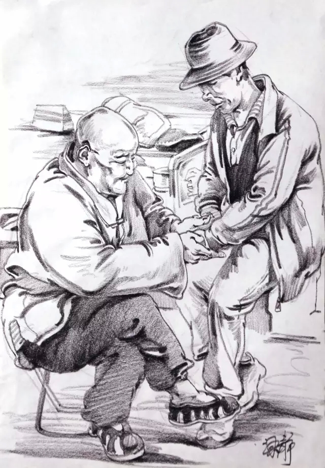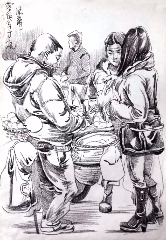場景速寫中所指的動態(tài)是畫面中單個或組合人物的動作形態(tài)。由于場景速寫主要對象是活動著的眾多人物,眾人的動作隨時發(fā)生著不同的變化,如何在畫面中安排好人的動作變化是場景速寫中的一個重要問題。注意眾多人物之間的形體和他們各自之間形體的穿插和他們的動態(tài)特征,要用心去比較對比,突出重點人物,后面被阻擋的人物面積占的比例小,在構(gòu)圖完成后,一般要在最好畫,在主體人物畫完之后,可以作為參照畫后方的人物,要注意他們的關(guān)系。