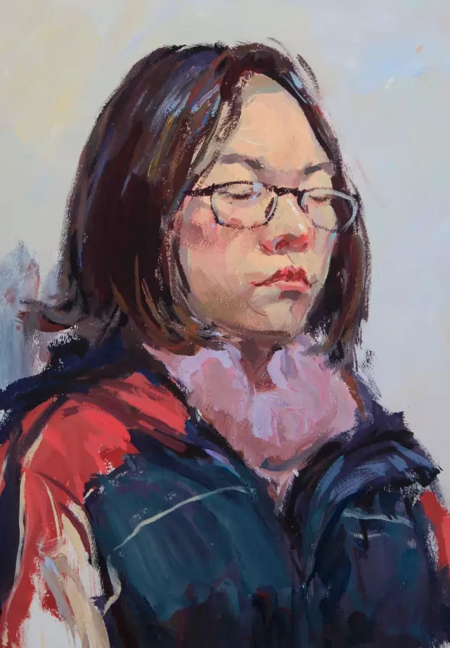一般情況下,最重的和最亮的色彩都在人物頭部上。背景即使很重也重不過頭部最重的地方,背景即使很亮也亮不過頭部最亮的部分。在表現(xiàn)時(shí),我們應(yīng)適當(dāng)加入衣服的色彩進(jìn)去。人物著裝明度對比強(qiáng),背景弱;同時(shí)肩部色彩受背景影響,是人物著裝的環(huán)境色區(qū)域。