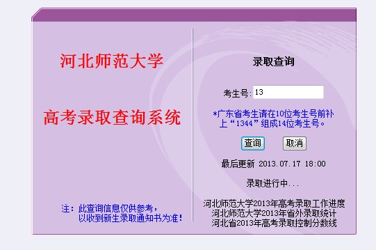2013年河北師范大學(xué)匯華學(xué)院高考錄取查詢