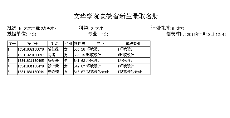 上一篇:2016年江漢藝術(shù)職業(yè)學(xué)院湖北省錄取名單 下一篇:2016年文華學(xué)院江蘇省藝術(shù)類錄取名單