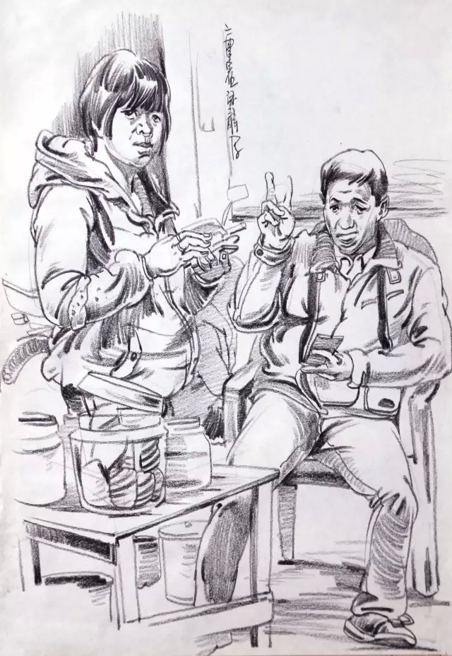 場景速寫要對場景題材進行取舍和組合,舍去無用與不美的因素,畫入有用與美感的因素,這個改造是適度的,所以畫出來的場景速寫還是感到自然真實,主體突出,構圖豐滿完整。為避免畫面單調,場景速寫中的環(huán)境和道具的運用也有重要意義。環(huán)境和道具可以說明人物的身份、關系、時間、地點,還可以填補畫面空白,調節(jié)畫面結構,環(huán)境和道具在形式上要服從和深化主題,分量不宜過重。