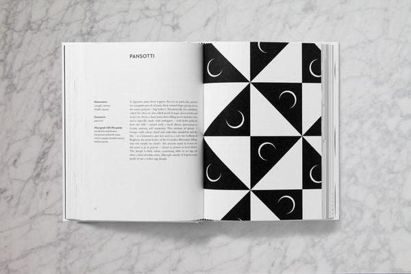 當一位設(shè)計師恰恰又是一位資深吃貨的時候,這樣一本神奇又充滿設(shè)計感的美食食譜被出版就不足為奇了。整本書全部由黑白兩色的幾何形狀構(gòu)成。書中描繪了300多種意面的形狀和每種意面同醬的完美搭配。