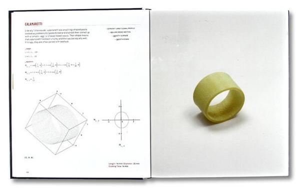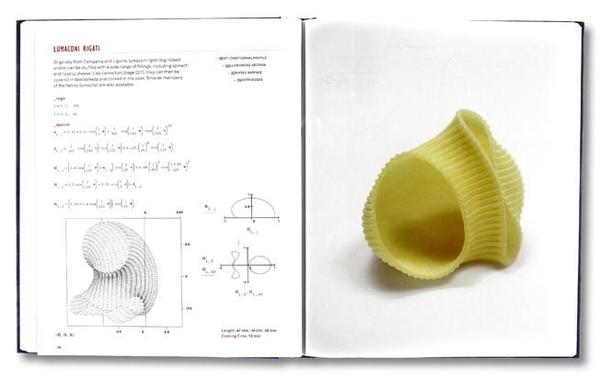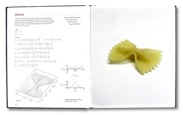 在倫敦,有兩位建筑師也在吃意面時有了頓悟,他們就是Marco Guarnieri和George L. Legendre,這兩位可愛的工程師在2011年出版了Pasta by Design。在書中,他倆給出了92種面條形狀,并把這92種意面家族演化譜系寫進了書里,還給出了對應(yīng)的方程式。