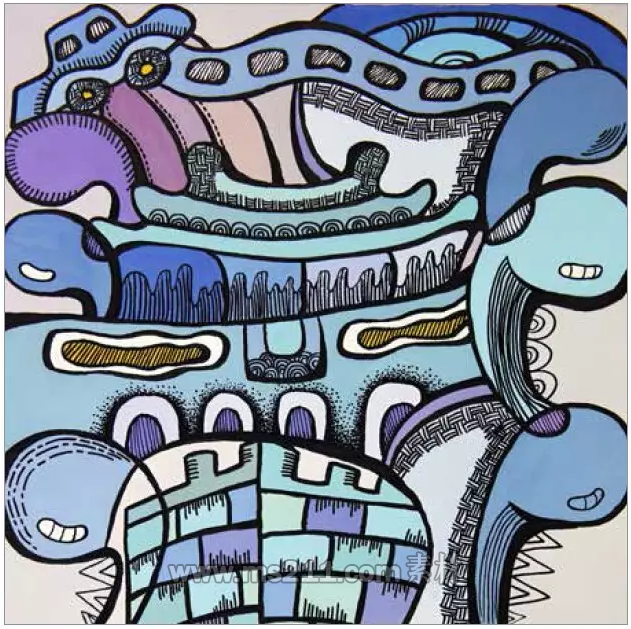 肌理裝飾是指在一個面(色塊)上畫出各種紋理來裝飾這個色塊的技法。此用法非常普遍,不僅簡單實用,還能取得很好的畫面效果。