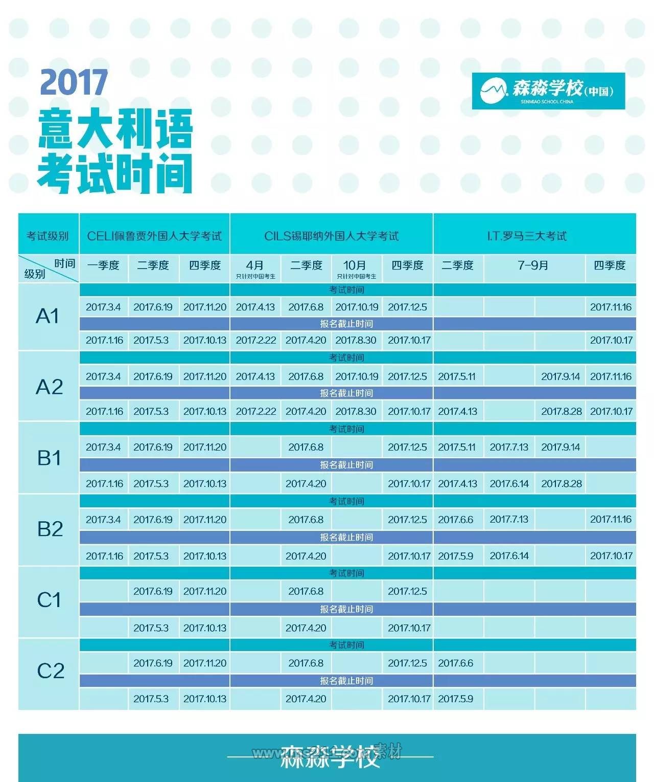 考試時(shí)間:每年的第一季度還有(A1、A2、B1)的春季考試,夏季考試(六月份)、秋季考試(十一月份)
