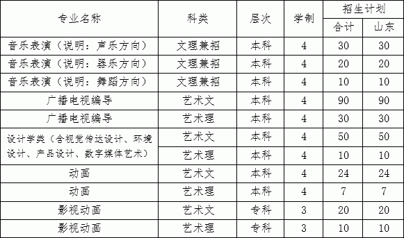 2.山東省外招生計劃: