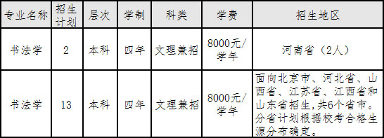 書法學(xué)??己细裆床蛔?個的省份編制招生計劃數(shù)為0,合格考生仍可報考。錄取時將所有招生計劃數(shù)為0省份考生的高考文化課成績(不分文理,均折合成750分滿分)和??紝I(yè)成績按5:5的比例合成綜合成績,根據(jù)預(yù)留計劃數(shù),從高分到低分排序錄取。
