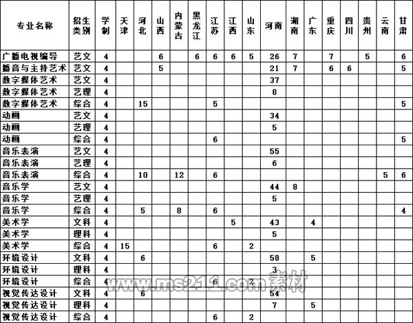 2020年黃淮學(xué)院藝術(shù)類本科專業(yè)招生計(jì)劃