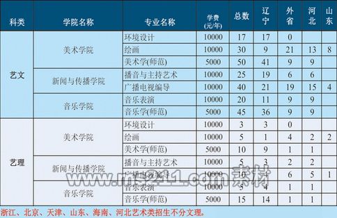 遼寧省美術(shù)類、音樂類、廣播電視編導(dǎo)、播音與主持藝術(shù),河北省美術(shù)類、音樂類,山東省美術(shù)類、廣播電視編導(dǎo)使用所在省組織的藝術(shù)類專業(yè)統(tǒng)考(聯(lián)考)成績;河北省廣播電視編導(dǎo)、播音與主持藝術(shù)專業(yè)使用所在省組織的專業(yè)校際聯(lián)考成績。