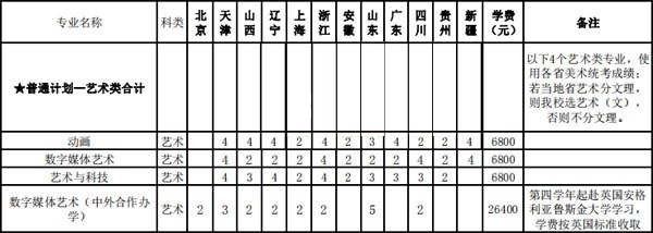 普通藝術類專業(yè)的學費標準為6800元/年;設計學類數字媒體藝術(中外合作辦學)專業(yè)在國內學習階段(一、二、三學年)學費標準為26400元/年,轉入英國(第四學年)學習后按照英國安格利亞魯斯金大學當年國際生的學費標準執(zhí)行。(注:以上國內收費標準如有變動,以江蘇省物價部門最新批復為準。)