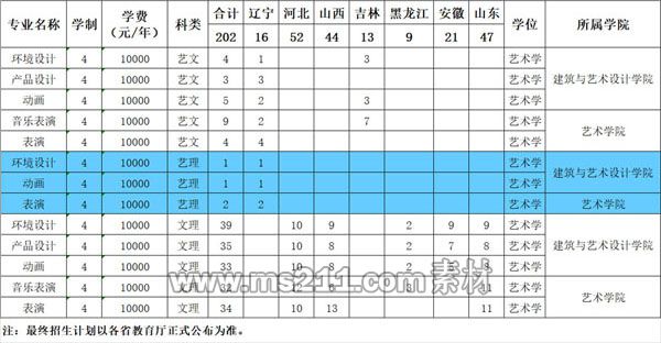 遼寧省按藝術類專業(yè)省統(tǒng)考成績報考我校的考生,所報專業(yè)對應的本省藝術類專業(yè)統(tǒng)考類別、統(tǒng)考專業(yè)、專業(yè)方向、成績專門化等需滿足下列具體要求:動畫、環(huán)境設計、產品設計專業(yè)對應省統(tǒng)考類別為美術類,統(tǒng)考專業(yè)為美術類,專業(yè)方向為美術類,成績專門化要求為美術類。音樂表演專業(yè)對應省統(tǒng)考類別為音樂舞蹈類,統(tǒng)考專業(yè)為音樂表演,專業(yè)方向為聲樂演唱,成績專門化要求為流行、美聲、民聲(任意一項均可)。表演專業(yè)對應省統(tǒng)考類別為戲劇與影視學類,統(tǒng)考專業(yè)為表演,專業(yè)方向為表演,成績專門化要求為表演。