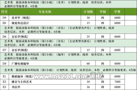 音樂類、舞蹈編導(dǎo)專業(yè)錄?。何幕煽?jī)達(dá)到省控線且專業(yè)成績(jī)分別達(dá)到我校相應(yīng)專業(yè)??己细窬€(使用省統(tǒng)考或聯(lián)考成績(jī)的達(dá)到省統(tǒng)考或聯(lián)考控制分?jǐn)?shù)線)的進(jìn)檔考生,按專業(yè)成績(jī)從高到低順序錄取。