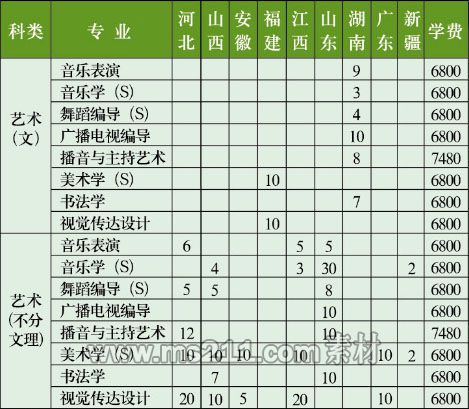 美術(shù)(設(shè)計(jì))類專業(yè)錄?。何幕煽?jī)和專業(yè)成績(jī)均達(dá)到省控線的進(jìn)檔考生,按文化成績(jī)加統(tǒng)考專業(yè)成績(jī)之和從高到低順序錄取。
