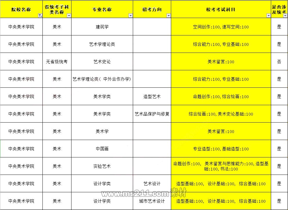 以下是從<2021年廣東省普通高校藝術(shù)類??紝I(yè)一覽表 >中央美術(shù)學院2021年藝術(shù)類各專業(yè)在廣東省招生考試情況: