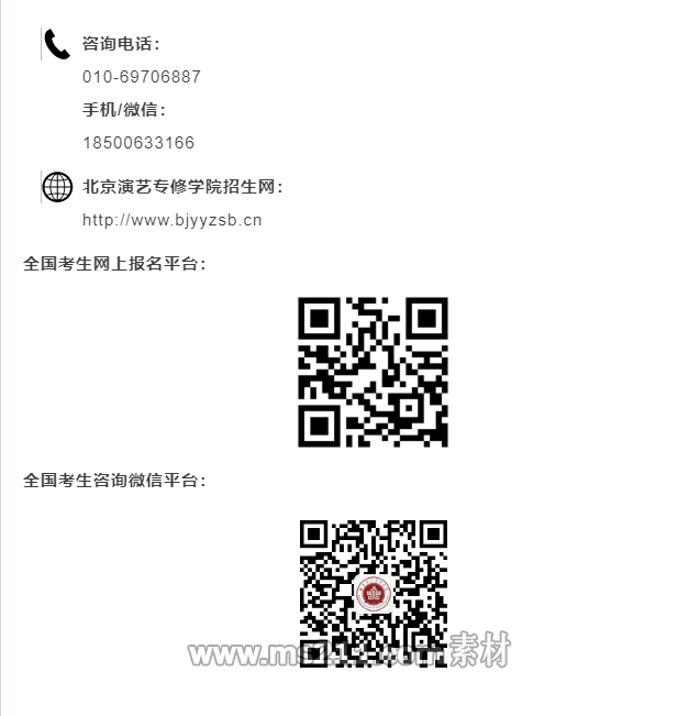 為了便于接收信息,了解校考動(dòng)態(tài),請(qǐng)考生添加我院招生田老師手機(jī)/微信:18500633166。具體聯(lián)系方式如下: