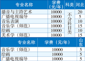 遼寧省美術(shù)類、音樂(lè)類、廣播電視編導(dǎo)、播音與主持藝術(shù),河北省美術(shù)類、音樂(lè)類,山東省美術(shù)類、廣播電視編導(dǎo)使用所在省組織的藝術(shù)類專業(yè)省統(tǒng)考成績(jī);河北省廣播電視編導(dǎo)、播音與主持藝術(shù),山東省音樂(lè)類使用所在省組織的藝術(shù)類專業(yè)校級(jí)聯(lián)考成績(jī)。