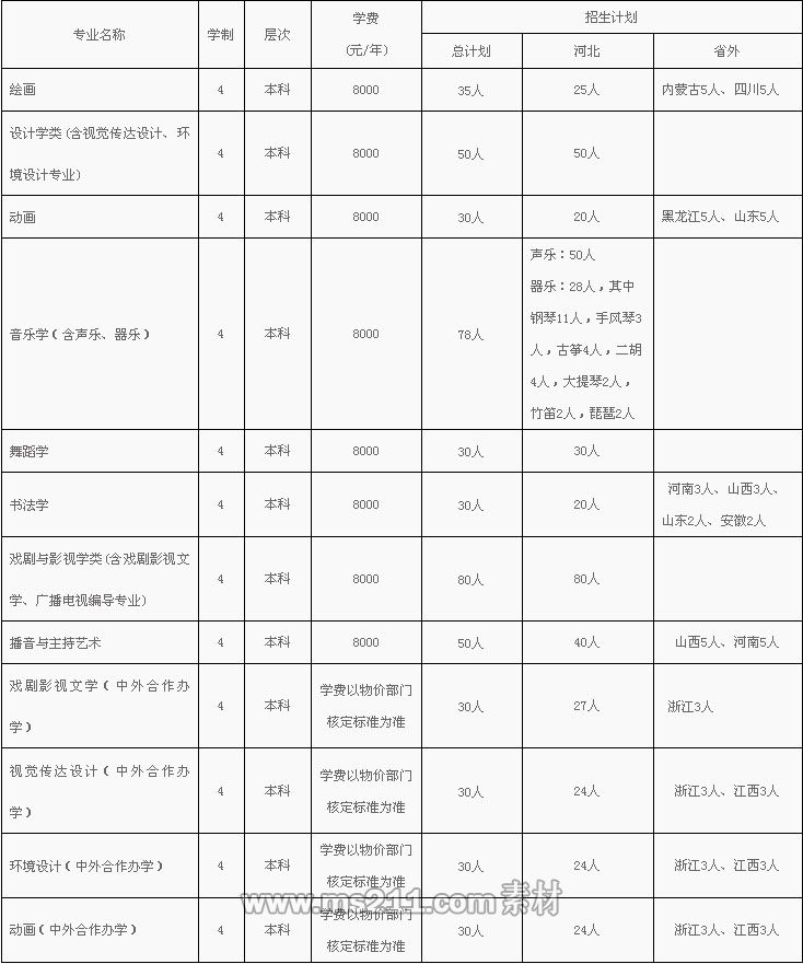 1.對于舞蹈學(xué)、音樂學(xué)、設(shè)計學(xué)類、繪畫、動畫、書法學(xué)專業(yè),在已投檔范圍內(nèi),依據(jù)專業(yè)成績錄取,同分考生依次比較文化總分、語文、數(shù)學(xué)、外語成績,擇優(yōu)錄取。舞蹈學(xué)專業(yè)要求男生身高不低于175厘米,女生身高不低于165厘米。