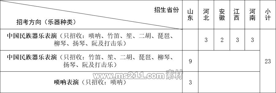 注:2021年,中國民族器樂表演方向在山東省分中國民族器樂表演和嗩吶表演2個方向招生,請仔細對照具體的招考方向與計劃數(shù)量。