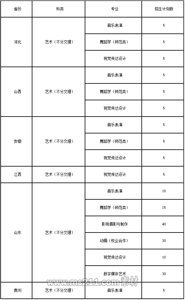 (1)山東省內(nèi)藝術(shù)類本科:設(shè)計(jì)學(xué)類(含視覺傳達(dá)設(shè)計(jì)、環(huán)境設(shè)計(jì)和數(shù)字媒體藝術(shù))、動畫(校企合作)和影視攝影與制作專業(yè)使用山東省美術(shù)類統(tǒng)考成績;廣播電視編導(dǎo)專業(yè)使用山東省文學(xué)編導(dǎo)類統(tǒng)考成績;舞蹈學(xué)(師范類)專業(yè)使用山東省舞蹈類(藝術(shù)舞蹈)統(tǒng)考成績;音樂表演專業(yè)使用山東師范大學(xué)平臺的音樂類聯(lián)考成績,且對主副項(xiàng)種類不作要求。