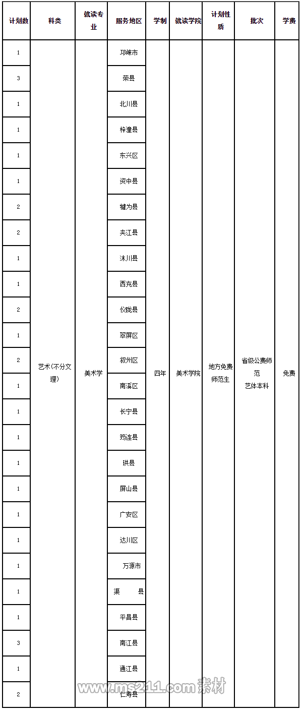 2021年四川師范大學(xué)四川省公費師范生美術(shù)學(xué)專業(yè)招生計劃