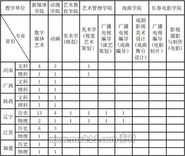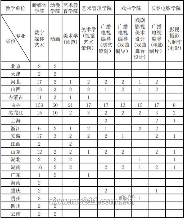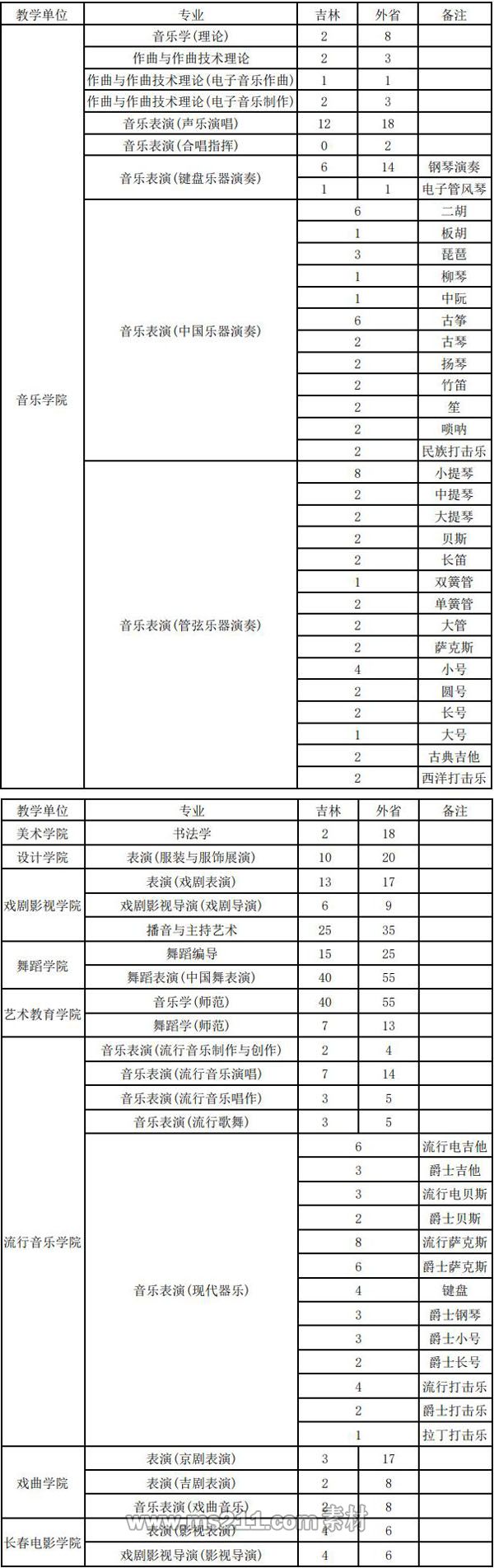 吉林藝術(shù)學(xué)院2021年非??紝I(yè)招生計(jì)劃