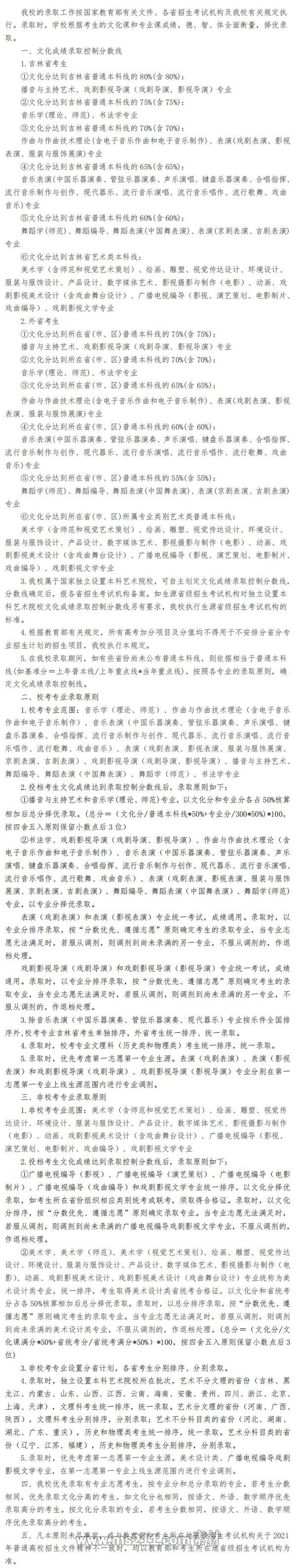 吉林藝術(shù)學(xué)院2021年錄取規(guī)則