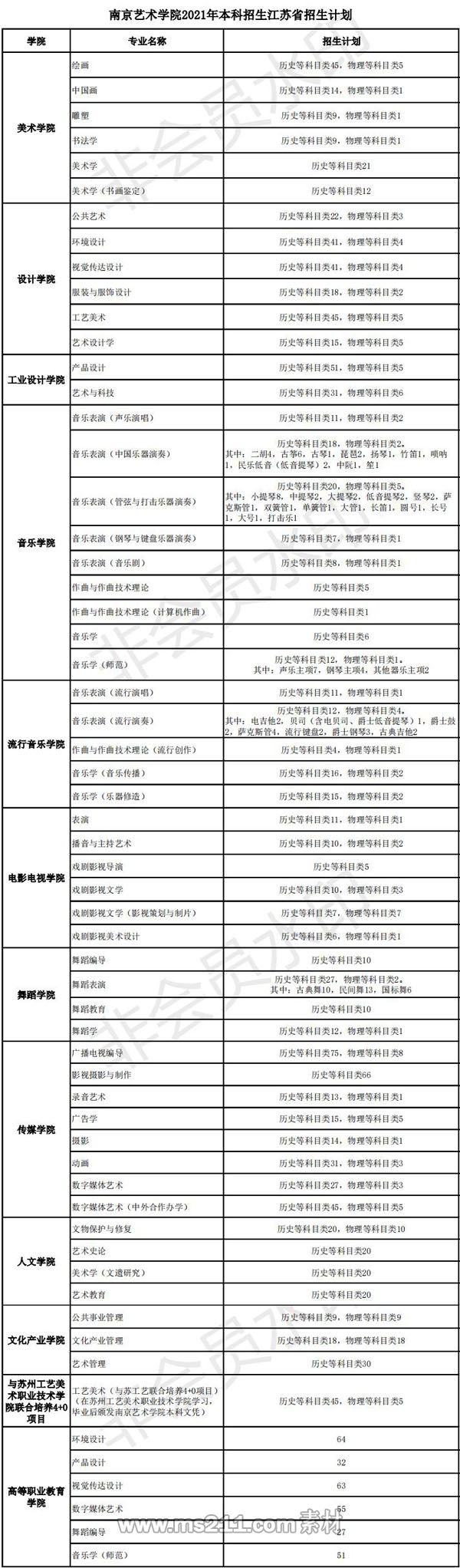 13.使用南京藝術(shù)學院??汲煽冧浫〉奈璧副硌輰I(yè),對文化分達江蘇省普通類(歷史等科目類)或普通類(物理等科目類)本科批次省控線×50%的考生,按照考生的??紝I(yè)成績從高分到低分擇優(yōu)錄取。