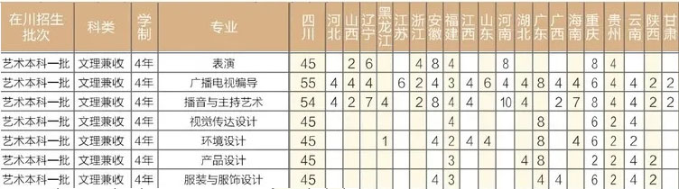 在文化成績和專業(yè)成績均達到錄取控制分數(shù)線的前提下,播音與主持藝術(shù)、表演、視覺傳達設(shè)計、環(huán)境設(shè)計、產(chǎn)品設(shè)計、服裝與服飾設(shè)計專業(yè)按專業(yè)考試成績從高分到低分擇優(yōu)錄取,廣播電視編導(dǎo)專業(yè)按文化考試成績從高分到低分擇優(yōu)錄?。蝗鐐€別省市規(guī)定了某個專業(yè)的錄取原則或投檔原則,按其規(guī)定執(zhí)行。