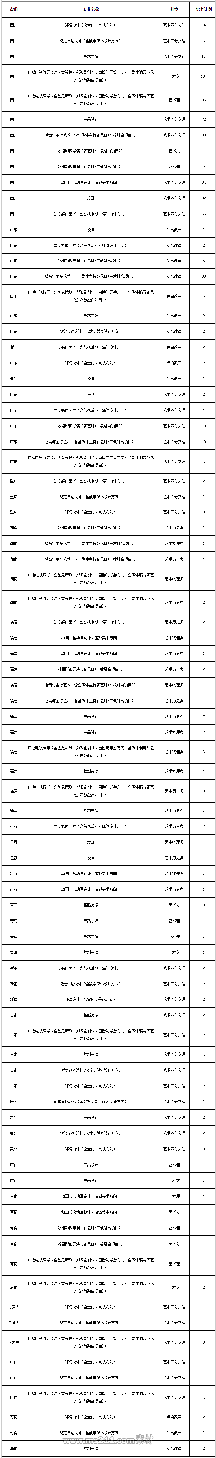 廣播電視編導專業(yè)、戲劇影視導演專業(yè),四川省按文化成績由高分到低分擇優(yōu)錄取,其他省份若有統(tǒng)一的錄取規(guī)則和投檔規(guī)則,按照相應省份文件執(zhí)行,若無統(tǒng)一規(guī)定,則按文化成績與專業(yè)成績之和由高分到低分擇優(yōu)錄取,總分相同時優(yōu)先錄取專業(yè)成績較高的考生。