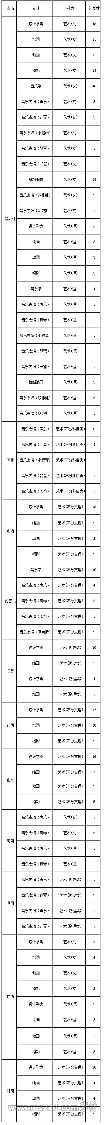 我校設(shè)計學(xué)類(含環(huán)境設(shè)計專業(yè)、視覺傳達(dá)設(shè)計專業(yè)、工藝美術(shù)專業(yè))、繪畫、動畫、攝影、音樂學(xué)、音樂表演、舞蹈編導(dǎo)等專業(yè)錄取時,在省級招生考試院投放的考生電子檔案范圍內(nèi),按照專業(yè)課(術(shù)科)統(tǒng)考成績的排名從高分到低分擇優(yōu)錄取。如專業(yè)課成績相同,按文化課成績擇優(yōu)錄取;如專業(yè)課成績相同,文化課成績也相同,藝術(shù)文科考生按照語文、外語、數(shù)學(xué)單科成績依次排序擇優(yōu)錄取,藝術(shù)理科考生按照數(shù)學(xué)、外語、語文單科成績依次排序擇優(yōu)錄取。對享受加分政策的藝術(shù)類考生,可按相應(yīng)生源所在省(自治區(qū)、直轄市) 招生考試院的規(guī)定加分提檔,進(jìn)行專業(yè)錄取時,以實際考分為準(zhǔn)。